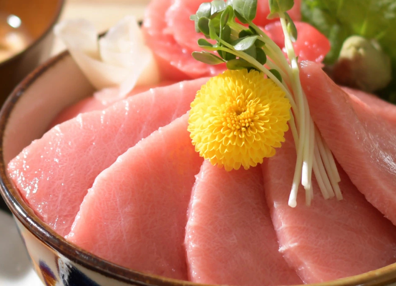 - 王道のお刺身・お寿司:まずはシンプルに厚切りのお刺身で。わさび醤油で本まぐろ本来の味を堪能してください。